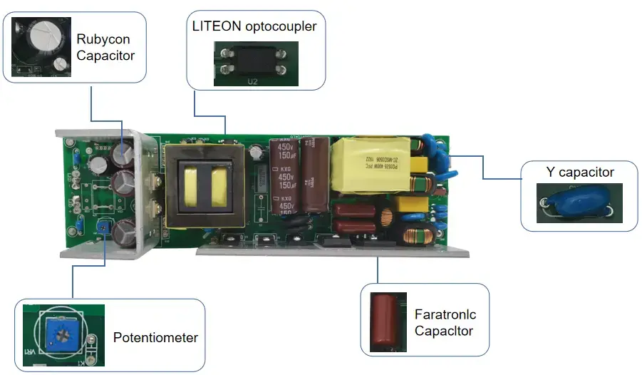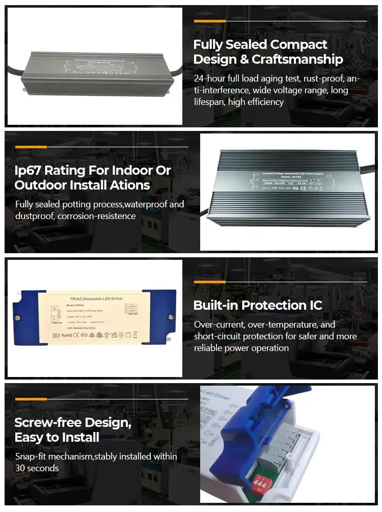 Дәл тұрақты ток · Ұзақ төзімділік: STARWELL тұрақты ток триакының күңгірттенетін жарықдиодты драйвері жоғары дәлдіктегі тұрақты ток чипін қабылдайды. Шығу тоғының қателігі ≤ ±3%, шығыс тогы 1200мА тұрақты, ал жыпылықтау тереңдігі <5%, осылайша жыпылықтау және жарықтың әлсіреуі мәселелерін жояды. Ол жарық диодты жарықтандыру құрылғыларының қызмет ету мерзімін 30% -дан астам ұзартады, және оның үздіксіз жұмыс істеу мерзімі 50,00 сағатқа жетуі мүмкін.