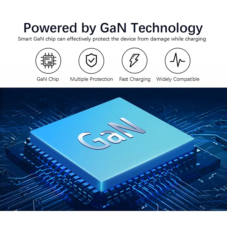Ган: Ган чиптері бар, оның мөлшері 140 Вт-дің өлшемі дәстүрлі зарядтағыштармен салыстырғанда 50% -ға азаяды, бұл розеткаға арналған кеңістікті қоспай, іссапарларға немесе кеңседе пайдалануға мүмкіндік береді.