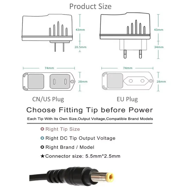 Жоғары сапалы тәулік бойы электрмен жабдықтау адаптерін Қытай өндірушісі Starwell ұсынады, біздің бұл адаптеріміз бар, мысалы, АҚШ, Ұлыбритания, ЕО және AU штепсельдері бар.