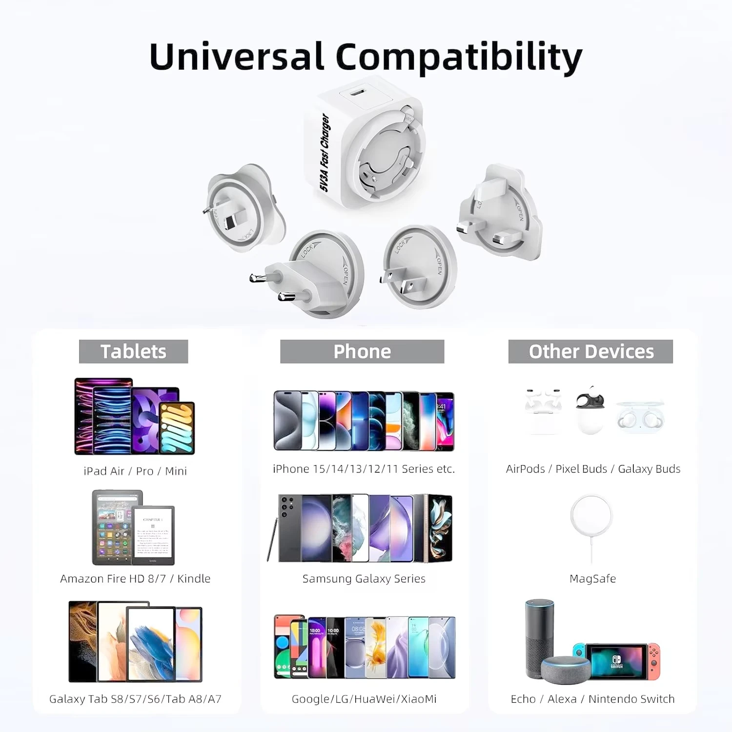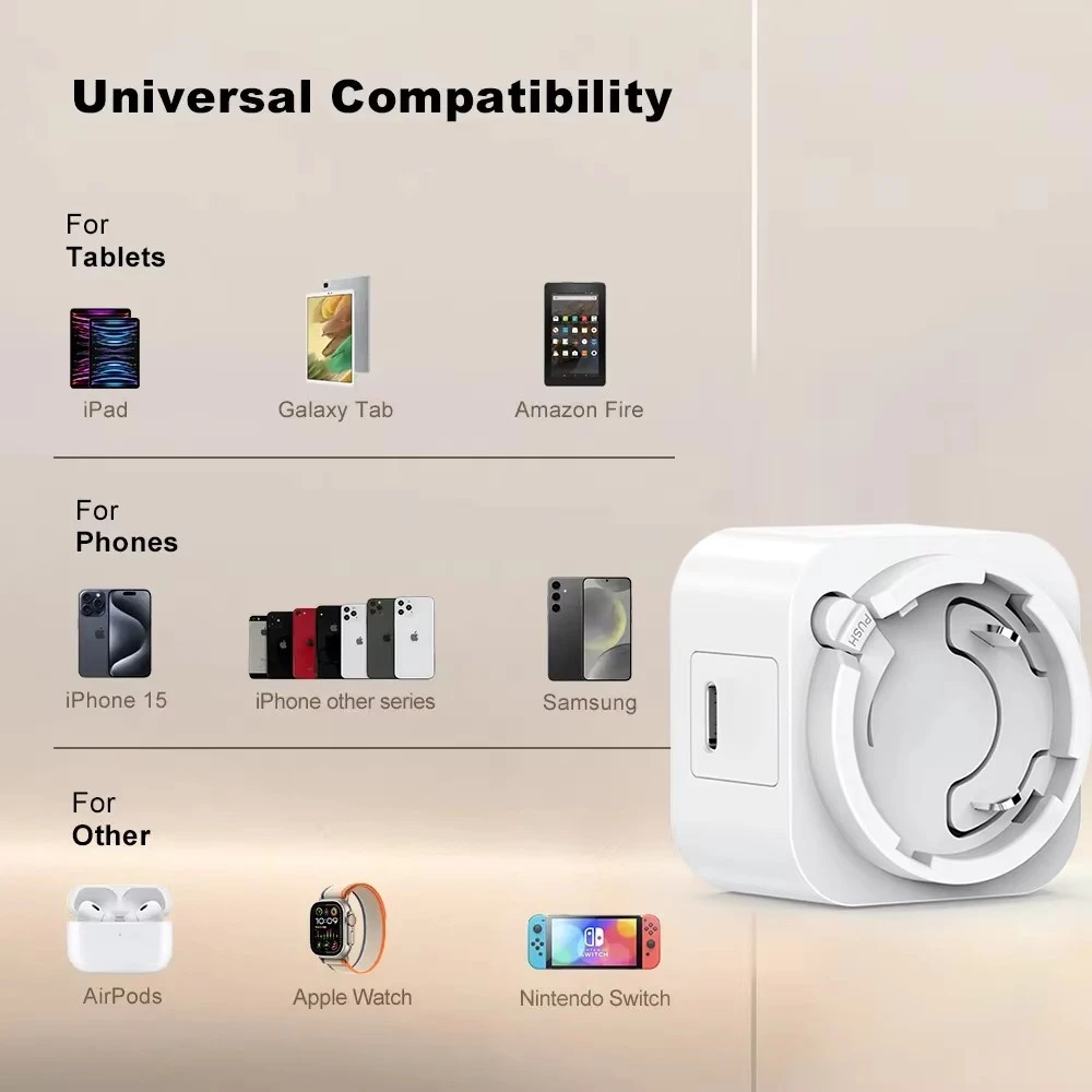 Смартфондарды, планшеттерді, портативті динамиктерді және басқа электрониканы, бұл адаптерді қуаттауға өте ыңғайлы, бұл адаптер бір ықшам шешімде жылдам, қауіпсіздік және ғаламдық әмбебапты үйлестіреді.