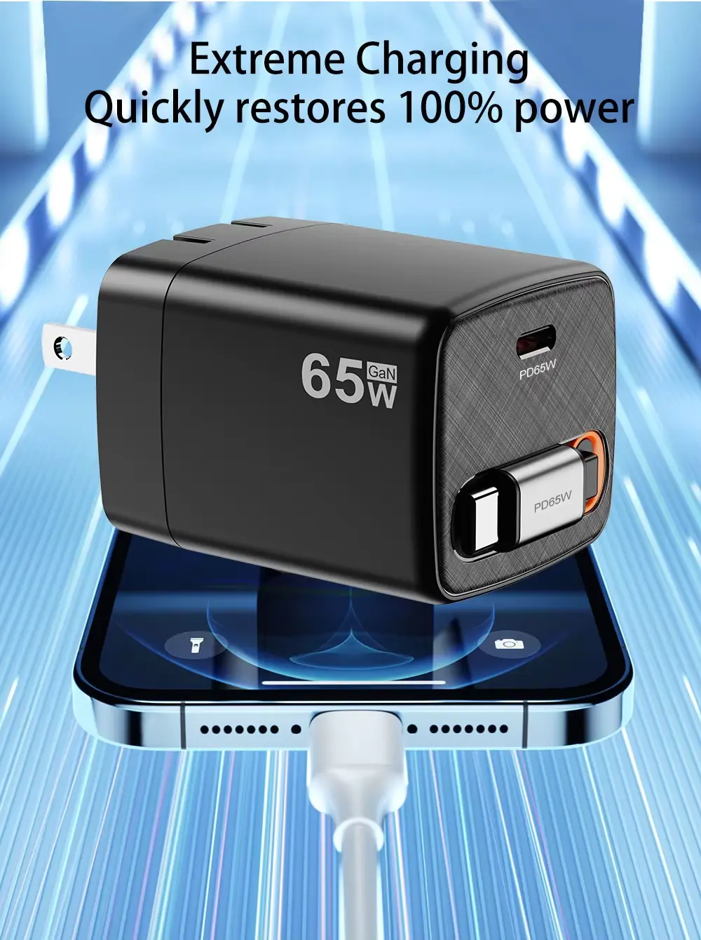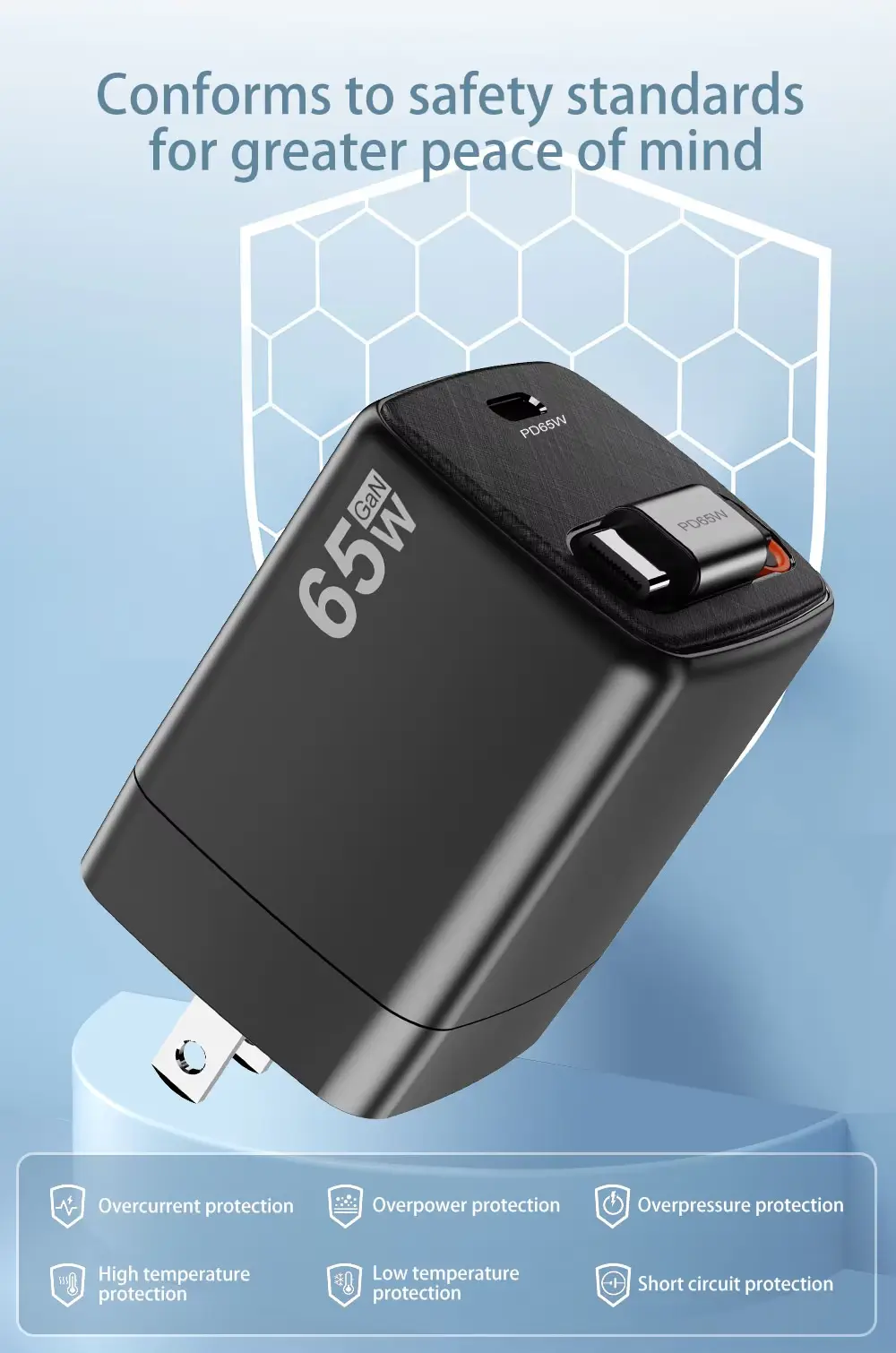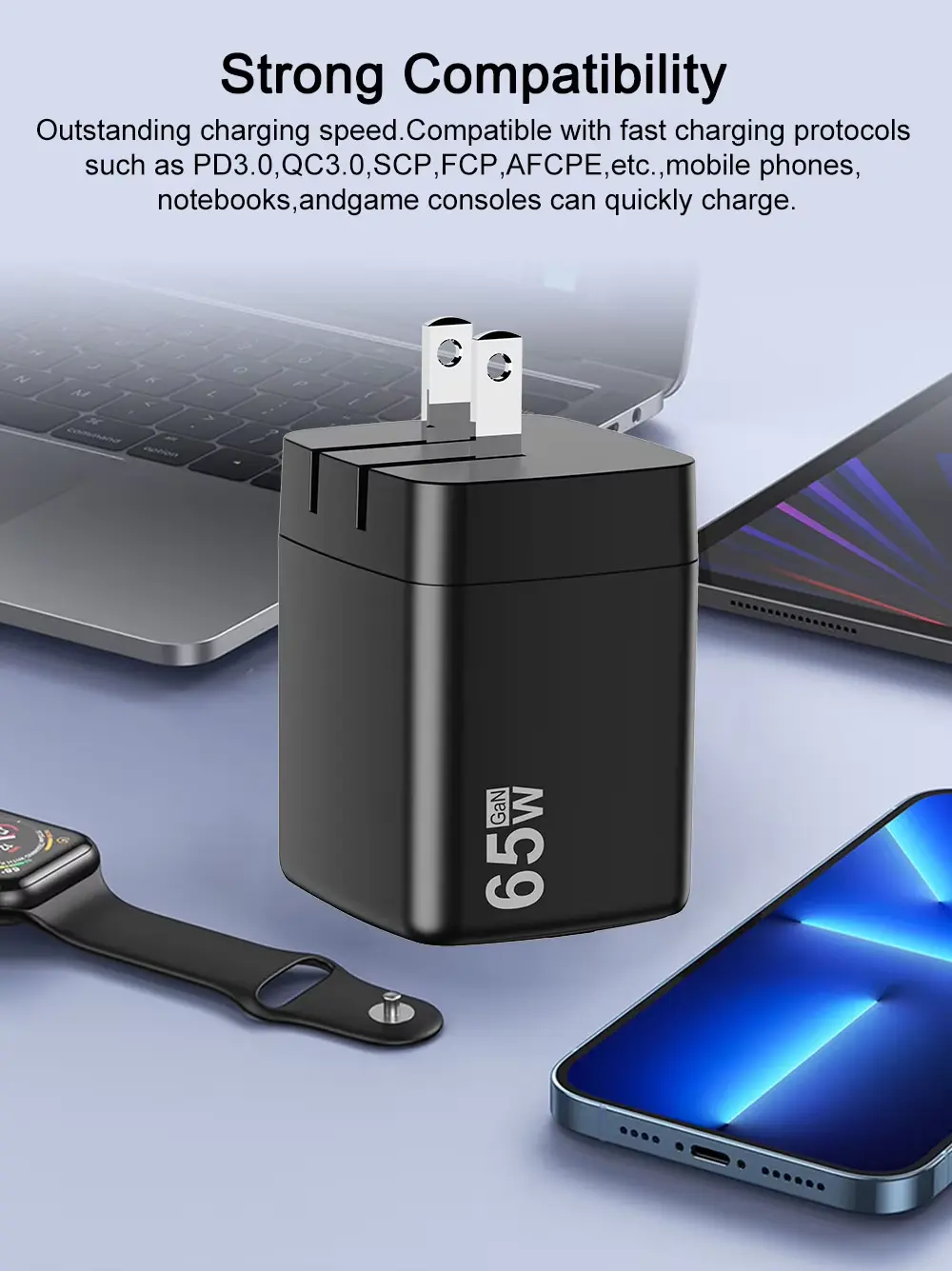 Теңшелетін логотип Mini 65W PD GAN USB C зарядтағыш Есіктің бүктелетін Жиынтық Біз USB Travel Adapter Телефон зарядтағыш |