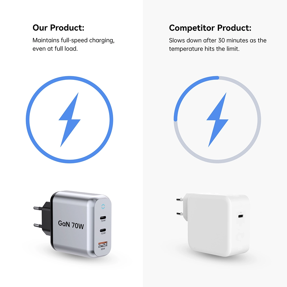Starwell Lutter 70w PD-ді жылдамдық планшеті үшін жылдам зарядтағышқа арналған QuartPop зарядтағыш, сонымен қатар 70 Вт-ді шақырды, 2C1A, ұялы телефондар мен планшеттік құрылғыларды жылдам зарядтау қажеттілігін қанағаттандыру. Жетілдірілген галлий нитридінің технологиясымен, орташа мөлшері, күшті. Бір портта қолданған кезде USB-C1 интерфейсінің максималды шығу қуаты - 70 Вт. Екі порттар бір-бірімен бірге қолданылған кезде, USB-C1 әлі де 45w PD-ді жылдам зарядтауды қолдайды. Әр түрлі құрылғылармен кең үйлесімділікті қамтамасыз ету