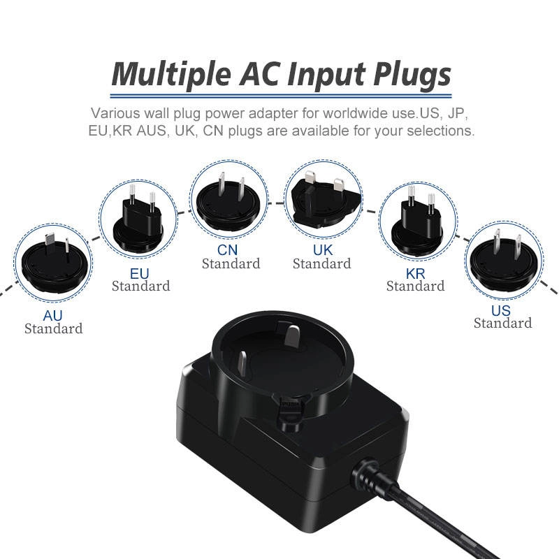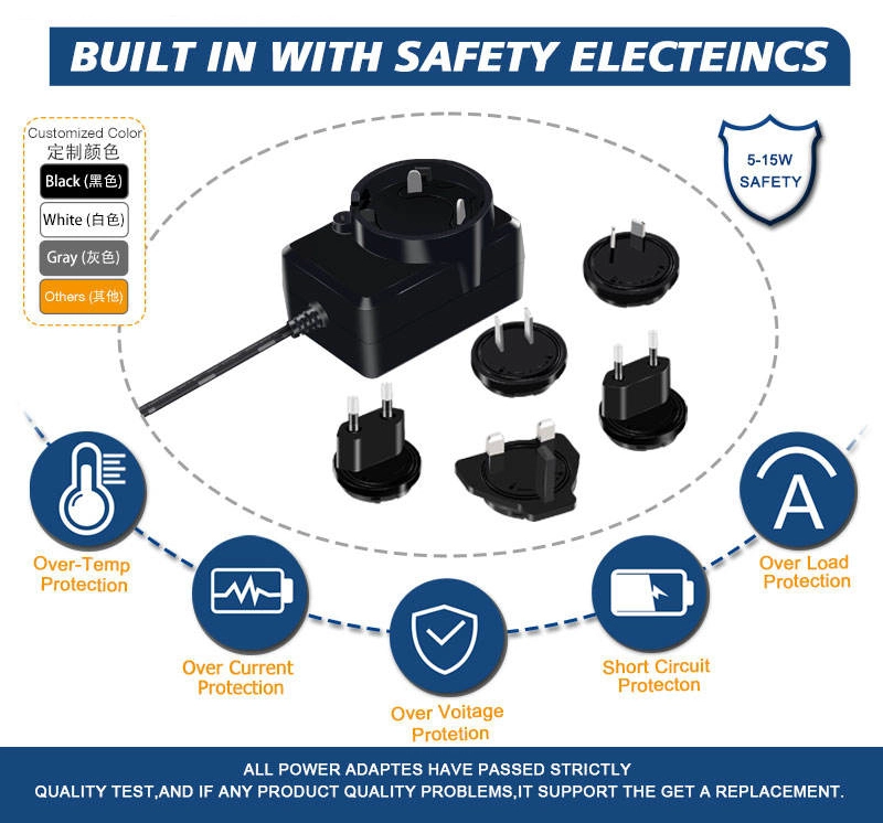 Starwell жоғары сапалы ажыратылатын штепсельдік адаптер Қуат көзі қуат адаптері - бұл электр желісінен айнымалы ток (ауыспалы ток) электр қуатын розеткадан тұрақты, төмен вольтты тұрақты, төмен вольтты DC (тікелей ток) тұрақты, олар кең электронды құрылғыларға айналдыруға арналған. Оның анықтайтын ерекшелігі - әртүрлі халықаралық розеткаға сәйкес келетін шешілетін және ауыстырылатын штепсельдердің жиынтығы (жиі «айнымалы ток штепсельдері» немесе «кіріс пышақтары») жиынтығы.