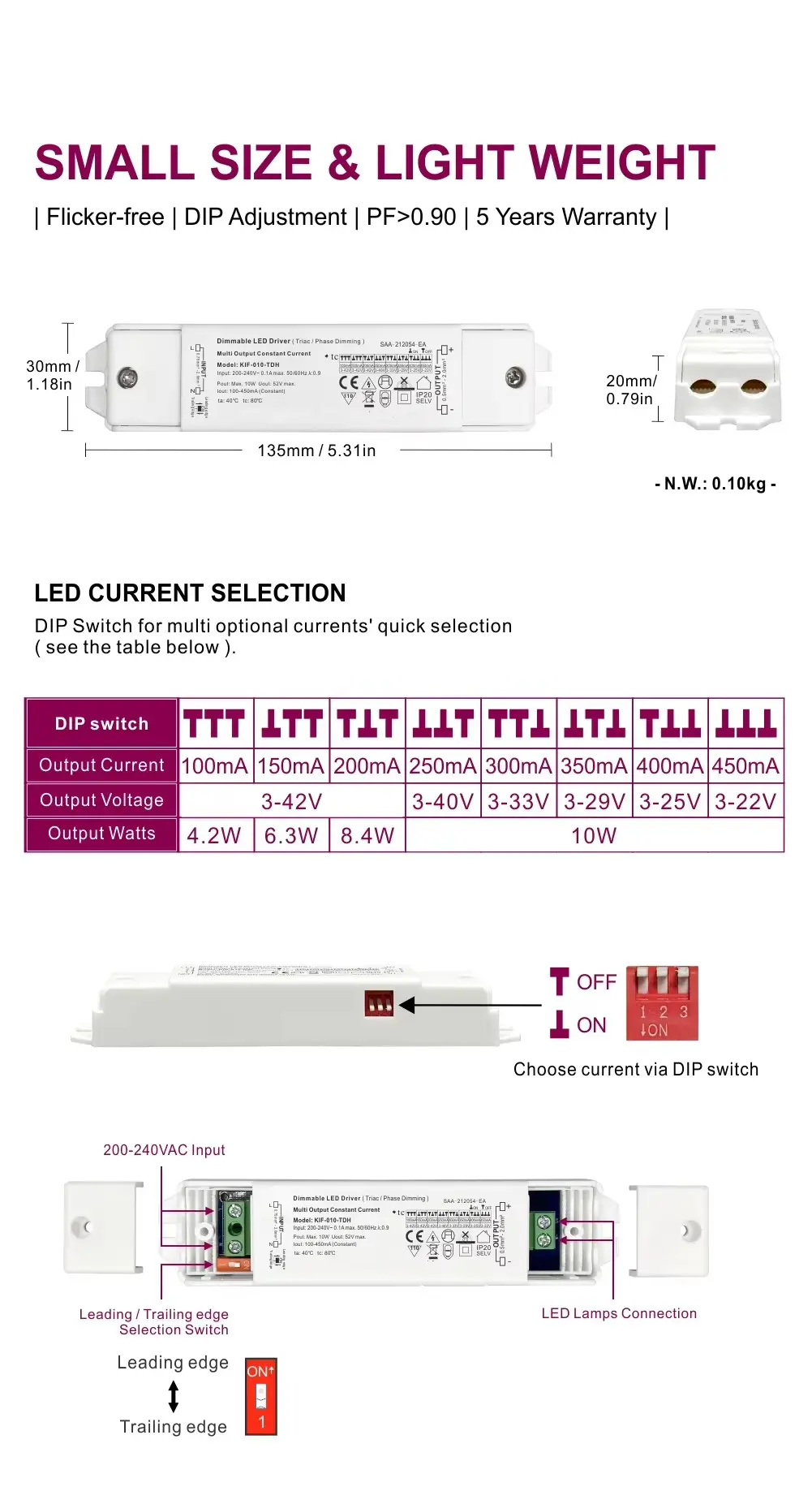 Еш қиындықсыз, тегіс күңгірттеу: Стандартты алдыңғы қатарлы TRIAC қабырға диммерлерімен үйлесімділік үшін арнайы жасалған. Жақсы пайдаланушы тәжірибесін қамтамасыз ете отырып, жыпылықтаусыз, қалқымалы әсерсіз немесе тұрақсыз ажыратусыз төмен деңгейге дейін кең, тегіс күңгірттеу диапазонына қол жеткізіңіз.
