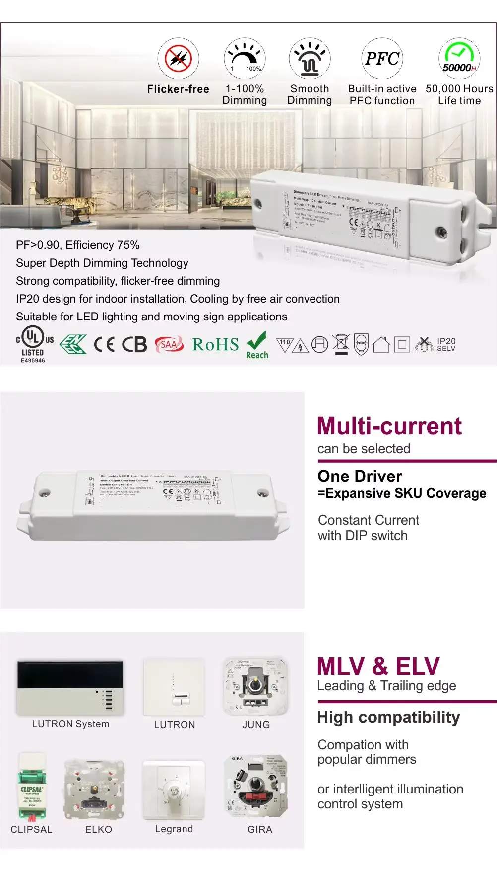 4. Үйлесімділіктің күңгірттенуіне байланысты бас ауруларын шешіңіз. Біздің драйверіміз TRIAC диммерлерінің кең ауқымымен біркелкі жұмыс істеу үшін алдын ала сыналған, бұл сізге әзірлеу уақытын және қолдау шығындарын үнемдейді.