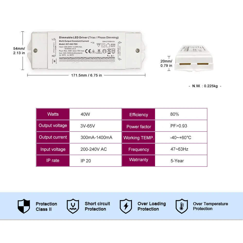 Тұрақты ток 40 Вт триак күңгірттелетін жарық диодты драйвер